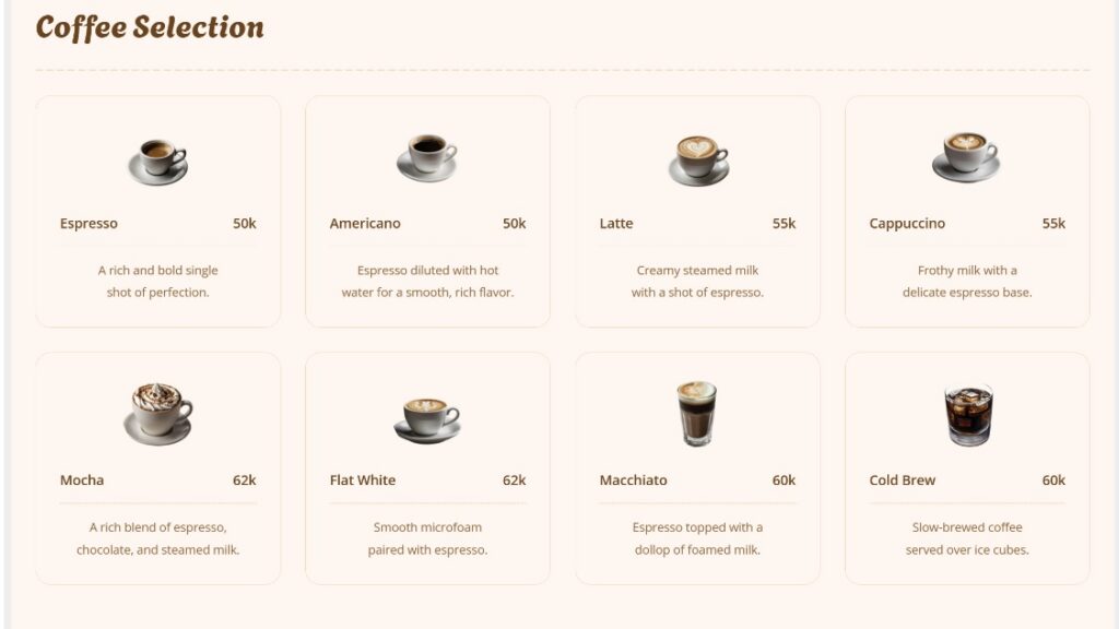 Solusi website modern untuk UMKM, coffee shop, portfolio kreatif, dan landing page profesional — membantu bisnis tampil maksimal dan stand out di dunia digital.